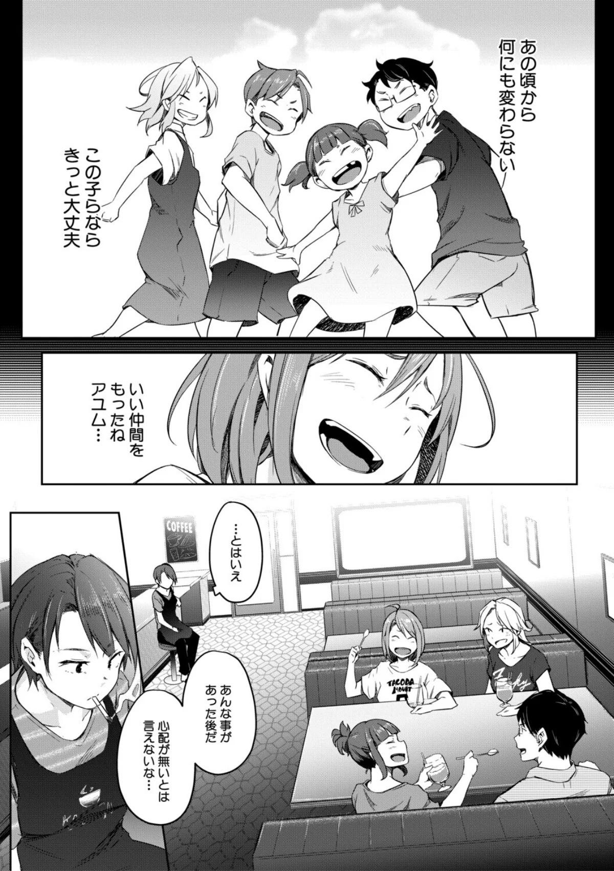 幼馴染のアユム・スズネ・コウイチ・ハナの4人は、大人になっても親友として過ごしていました。しかし遺伝子疾患の病気により、突如アユムが女体化してしまいます。それをきっかけに4人の関係性にも変化が現れ、幸せを求めて錯綜する姿が描かれます。女体でのオナニー、フェラチオ、パイズリ、そしてセックスと、初めての経験や強すぎる刺激に戸惑うアユムの心境が丁寧に表現されています。恋愛要素も織り交ぜながら、女体化をテーマにした叙情的な物語が展開されます。