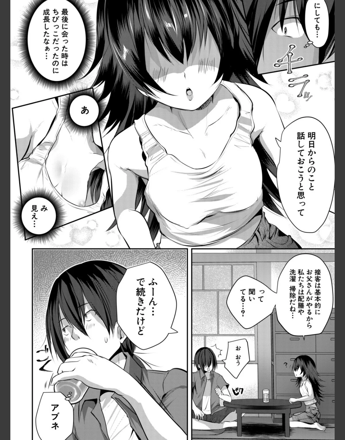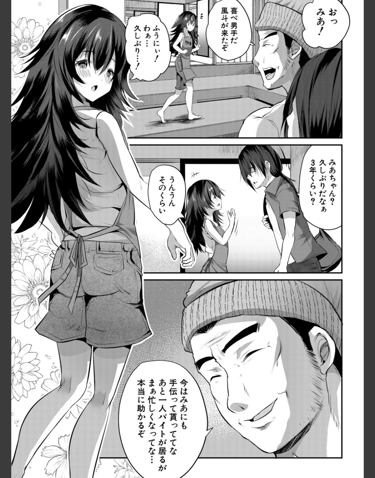 夏休み、主人公「風斗」は叔父が営む海辺の民宿でアルバイトを始める。そこで出会った小柄な女の子たちとのハーレムな体験が待っていた。初日、風斗はバイトの「澄美」と叔父のセックスを目撃し、興奮を覚える。恥ずかしがりながらも性に興味を持つ「みあ」との触れ合いから、二人はセックスに至る。さらに、幼馴染の「心海」と再会し、彼女とも濃厚な関係を築く。処女や中出し、3P・4Pのシチュエーションが織り交ぜられた、刺激的な夏の物語です。