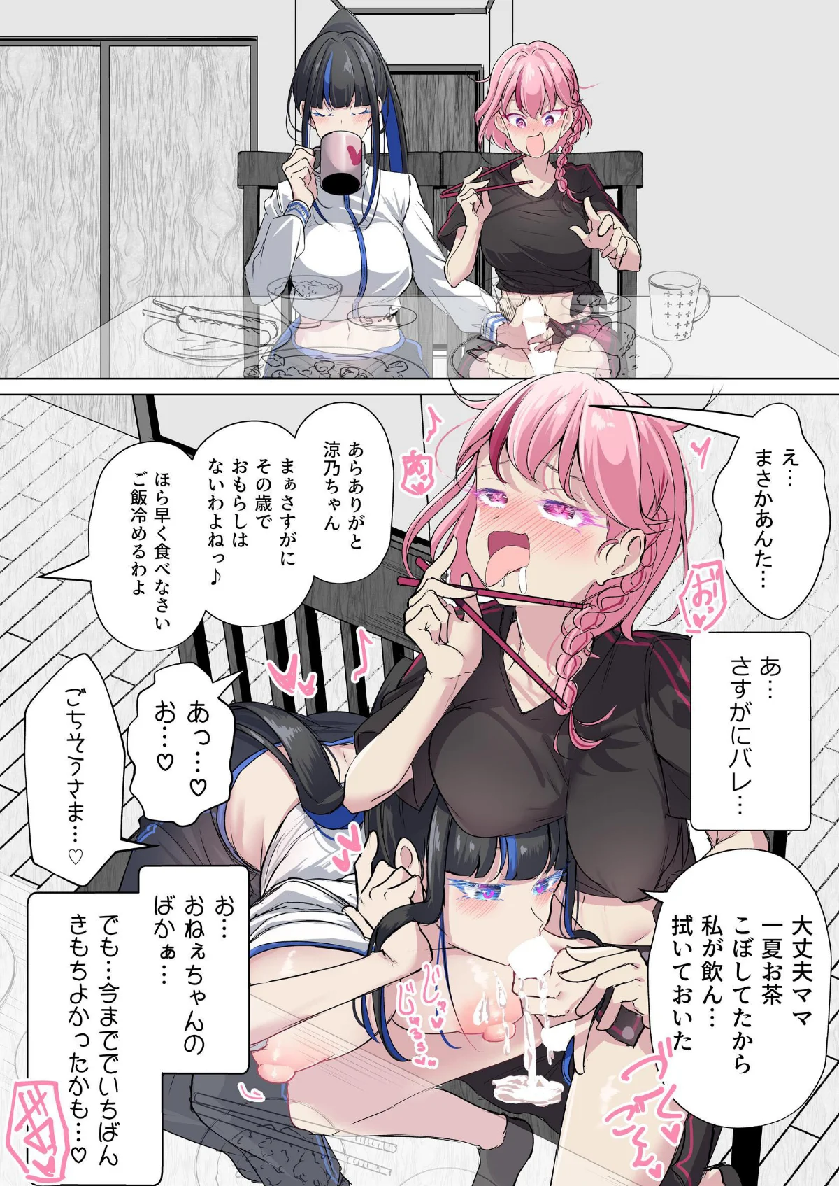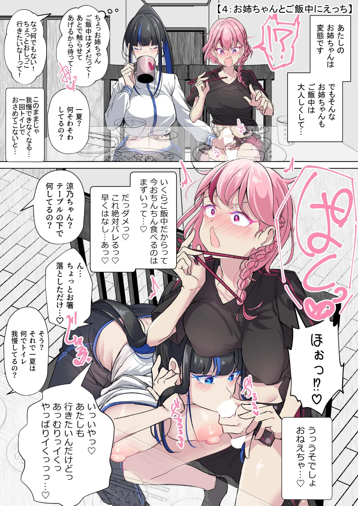 ふたなりの妹・一夏と、妹を愛してやまない変態巨乳お姉ちゃん・涼乃の仲良し姉妹の物語です。涼乃は一夏のことが大好きすぎて我慢できず、いつでもどこでも妹を襲ってしまいます。部屋や食事中、エレベーター、学校、プリクラ、カラオケなど、あらゆる場所でえっちしまくる二人の日常を描いた作品です。第1話から第40話まで全219ページの基本カラー1ページ漫画で、セリフ差分により各話のページ数が増加しています。
