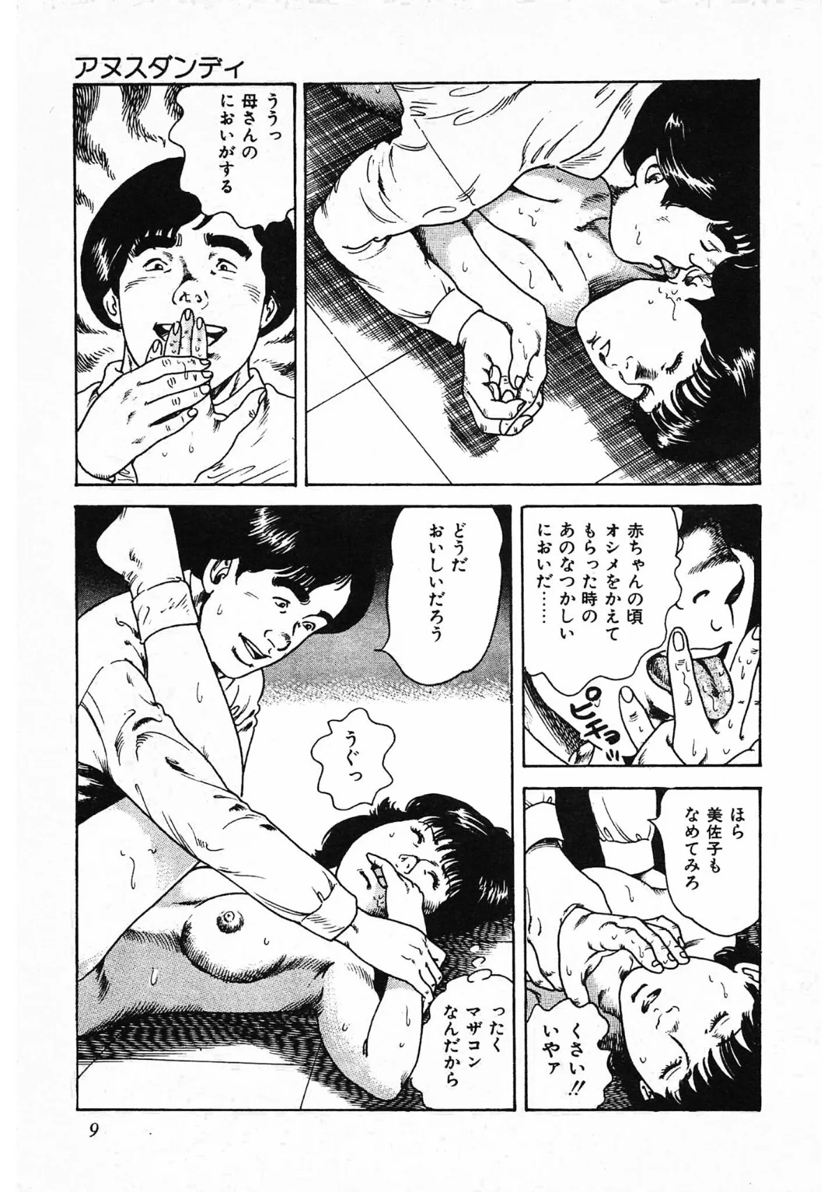 大地翔による珠玉の短編集で、学園を舞台にしたコメディ作品を含む全11作品を収録しています。巻頭作「アヌスダンディ」では、高校生でマザコンのアキラが恋人の美佐子との関係を通じて巻き起こす騒動を描きます。理科実験室でのひと時に、理科担当でホモの関野先生が登場し、予想外の展開が待ち受けます。学園という身近な舞台設定の中で、個性豊かなキャラクターたちが織りなすギャグとコメディの要素が満載の短編アンソロジーとなっています。
