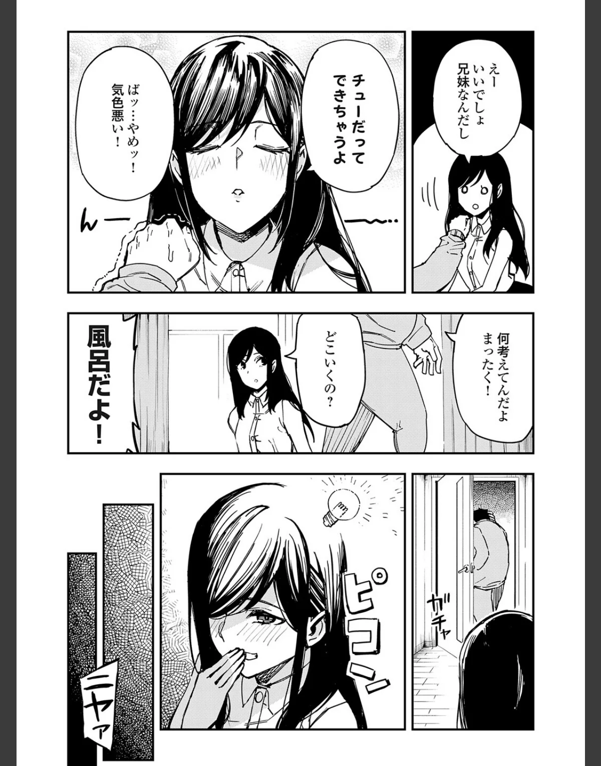 ストーリー展開は、千佳の兄に対するストレートな愛情を描いており、その過程での葛藤や楽しさが見どころです。特に、千佳が兄に抱く感情がどのように発展していくのかが気になり、一気に読み進めてしまいました。ページ数は23ページですが、その中に詰まった内容は非常に濃く、飽きることなく楽しめました。兄の反応と千佳の積極的なアプローチが交互に描かれることで、物語に引き込まれました。