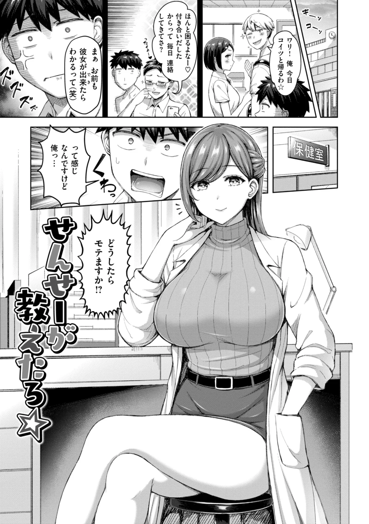陽キャギャルの綾辻さんがテストの点数向上のため、真面目なメガネ男子・伊集院くんに勉強を教わることから始まる恋愛ストーリー。お礼にパンツを見せた綾辻さんに、童貞の伊集院くんは刺激を受けてしまいます。さらに綾辻さんの母・千穂も加わり、夢の母娘丼プレイが展開。保健の春野先生による特別授業や、才色兼備なお義姉ちゃんとの夜、陰キャ美女との海でのひととき、眼帯ビキニ姿での羞恥プレイなど、個性豊かな爆乳ヒロインたちとのイチャイチャえっちな日常を描きます。制服姿の女性たちとの甘い体験や、処女との初々しい関係も含め、様々なシチュエーションでの濃密な時間を楽